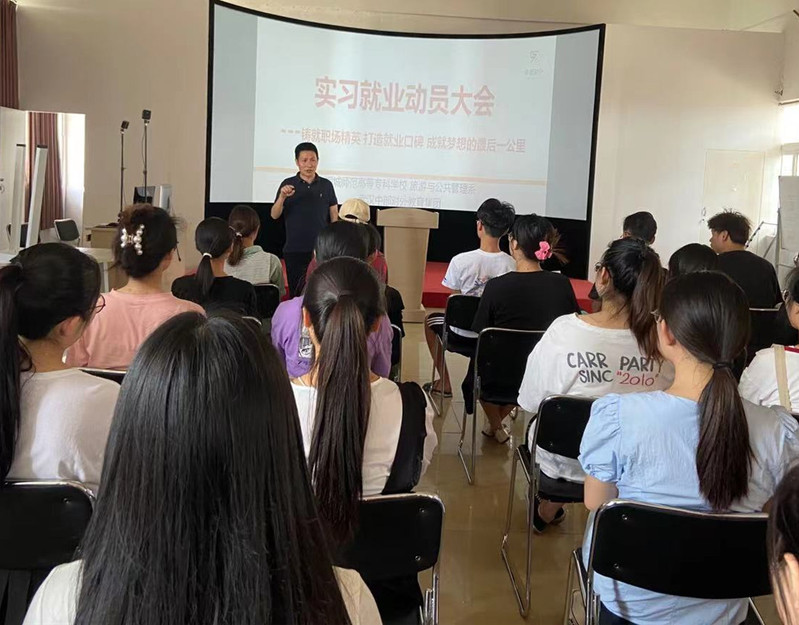 6月23日上午,旅游与公共管理系在毓秀楼A601实训室召开19高铁班实习动员会,校企合作代表赵经理、辅导员陈道琴老师参加了动员会,会议由汪青老师主持,企业负责人就实习安排、面试要求、实习注意事项与同学们进行了交流,面对面的回答了同学们提出的问题,正面回应了同学们的关切。