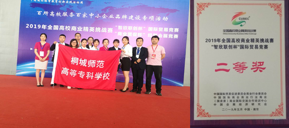 2019年5月30日到6月3日,2019年全国高校商业精英挑战赛国际贸易竞赛总决赛在南京国际会展中心举行,我校团队经过激烈角逐荣获二等奖。校领导高度重视比赛,校长沈波亲莅比赛现场,全程参与指导。  全国高校商业精英挑战赛(英文简称CUBEC)由中国贸促会商业行业分会于2012年发起并牵头组织,已经成功举办九届,比赛规模不断扩大。2019年,共有来自北京、上海、重庆、广东等22个省、市、自治区的近140所高等院校(高职院校仅16所)210只参赛队伍入围全国总决赛,2000名选手参与比赛。 本次比赛内容包括参展商业计划书、展位海报设计与商品陈列、新产品发布会、商贸配对贸易谈判以及展后总结报告五个部分,比赛实践性非常强,比赛内容非常丰富,以英语和其他小语种作为竞赛语言,完整模拟外贸企业参展工作和业务全流程。  2019年全国高校商业精英挑战赛以2019年中国(南京)跨国采购商品洽谈会暨2019年中国(南京)品牌商品博览会形式举行,是我国高等商科教育领域跨专业综合实训和创新实践平台,同时也是目前全国规模最大的现场赛事活动。 我校团队作为高职院校连续两年入围总决赛并获二等奖,实属不易,这是校领导高度重视学生专业技能大赛、精心打造大赛备赛巡赛体系的成果,是指导教师和学生牺牲自我、任劳任怨、刻苦奋斗的成绩,充分体现了我校学子敢于亮剑、勇于拼搏的精神斗志,展现了我校近年来开展“课证融合、课赛结合、课岗契合”人才培养理念改革获得的大丰收。 (撰稿:商贸与电子信息系 徐伟;核稿:苏泽军 )