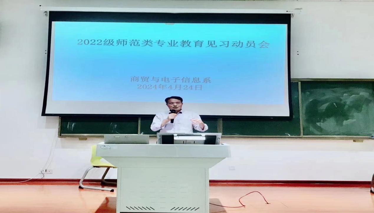 教育见习助成长,奋楫扬帆梦启航!为进一步强化实践教学环节,落实见习、实习一体化师范生实践教学制度,引导学生做好见习前的各项准备工作,商贸与电子信息系于2024年4月24日在以智楼报告厅召开2022