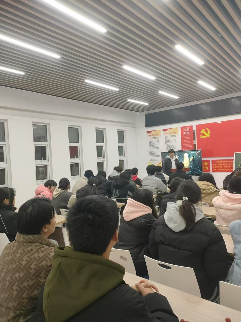 20241231日桐城师专高专24级现代教育技术1全班同学在5栋一站式社区开展了“颂红色风华,铸时代精魄”的红色朗诵活动。此次活动旨在通过诗歌朗诵的形式,让同学们在经典中汲取奋进力量,传承红色基因。