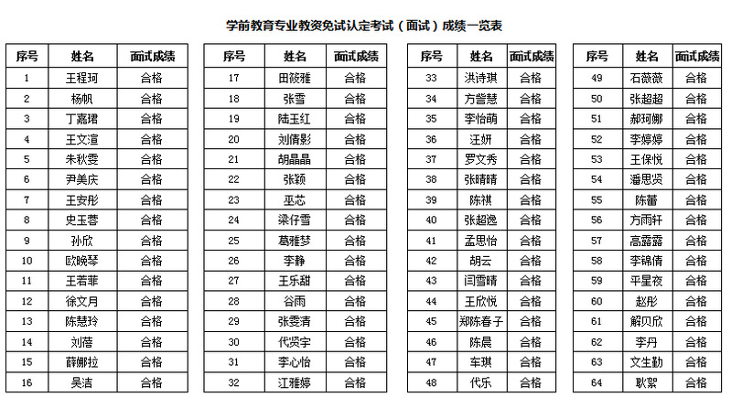 根据《kaiyun登入入口师范类学生免试认定小学、幼儿园教师资格教育教学能力考核工作实施办法》,王程珂等64人在2023年上半年kaiyun登入入口师范生教师职业能力面试合格。