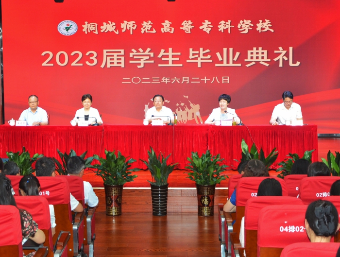仲夏之时,万物并秀。6月28日上午,桐城师专2023届学生毕业典礼在学校演艺厅举行。校党委书记王子龙出席典礼并致辞,典礼由副校长程玉梅主持。学校全体校领导,全体中层以上干部,毕业班辅导员、班主任,毕业生代表,教务处、学生处、招就处全体工作人员,各系部学管干事、教学秘书等到场观礼。