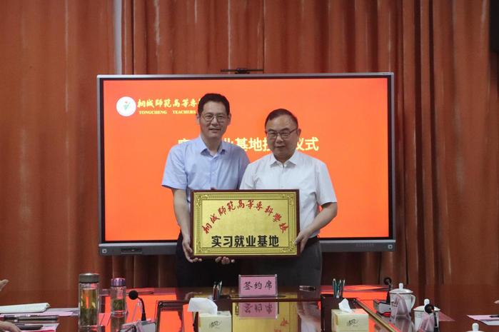 会上,学校与桐城国轩新能源有限公司签署战略合作协议,校长江贵生与桐城国轩新能源有限公司董事长江平共同完成“实习就业基地”授牌仪式。双方围绕人才培养、实训场地建设、学生实习实践等内容展开座谈交流。