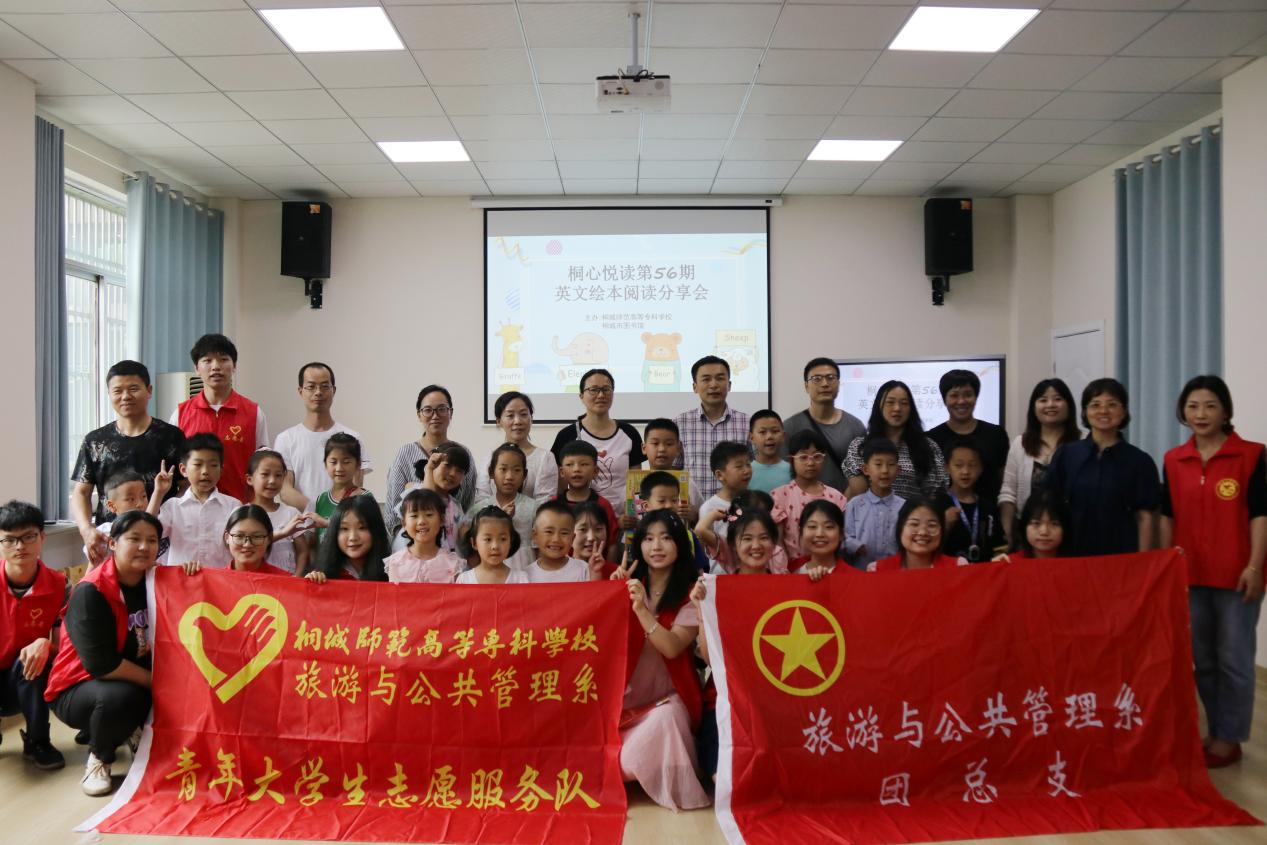 为了庆祝“六一”儿童节,创建良好的阅读环境和浓厚的书香文化氛围助推“全民阅读”推广工作的开展校团委、旅游与公共管理系组织“英语沙龙”协会青年志愿者走进桐城市图书馆,联合开展“桐心悦读”56暨英文绘本阅读分享会活动