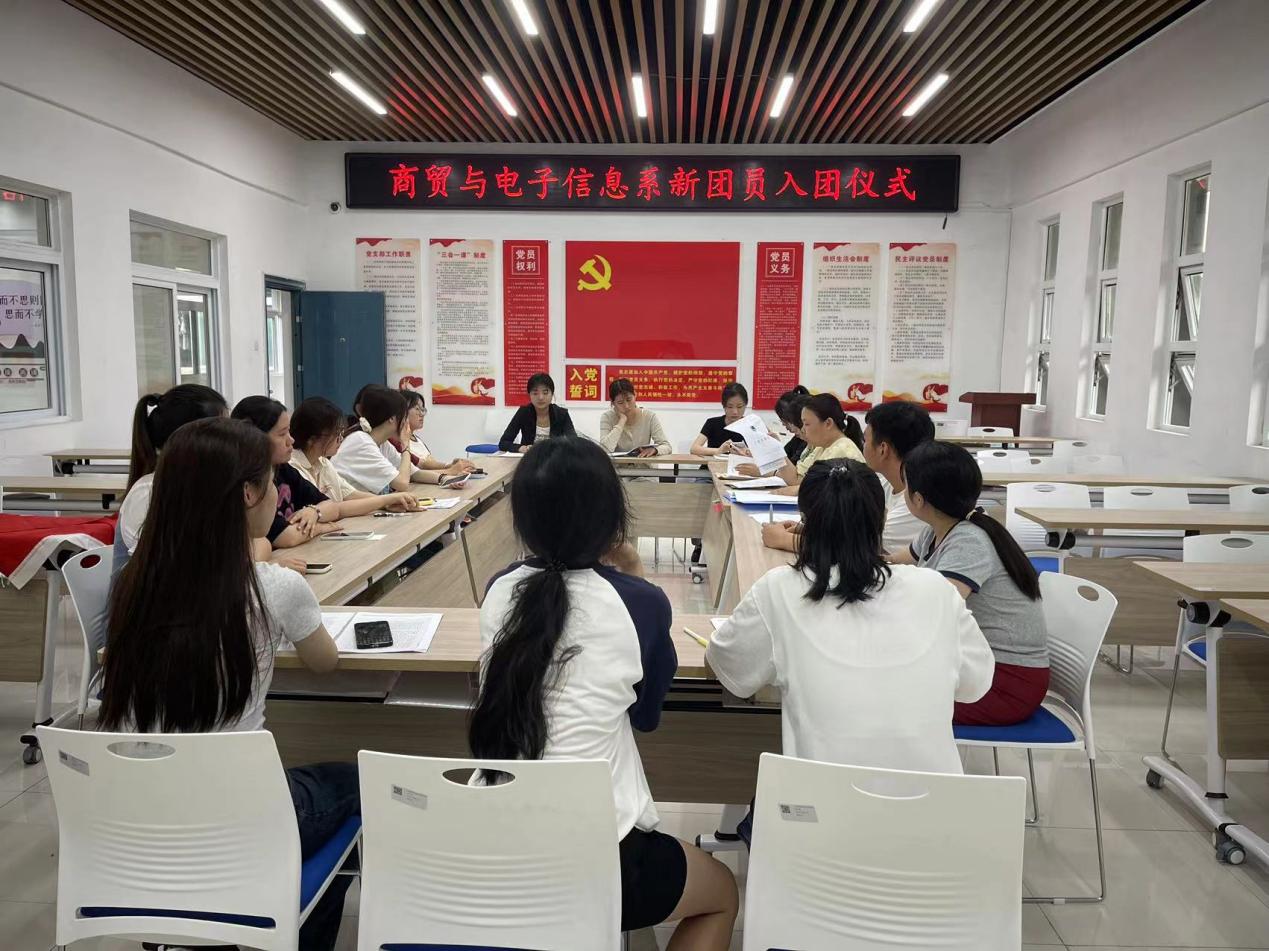 为全面贯彻习近平新时代中国特色社会主义思想,深入贯彻习近平总书记关于青年工作的重要思想,践行党、团、队一体化培养体系要求,2024年6月21日下午,商贸与电子信息系团总支在九号楼一站式社区举行2024年新团员入团仪式活动。商电系党总支青年委员、商电系学生党支部书记、商电系团总支书记胡艳艳、学生会主要负责人与各部门部长以及2024年所有新发展团员参加入团仪式,仪式由胡艳艳主持。