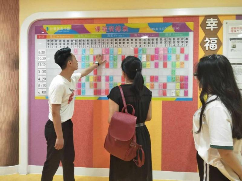 老师正面的回答了队员们的问题,并以手示意门口的公示栏,公示栏上写着孩子们每天所进行的活动与课程,看起来相当详尽。而在公示栏旁边更有早教老师记录着每个孩子的小小进步、成长。可以看出来该所早教机构很正规规范,队员们也对公示栏的内容非常认同。