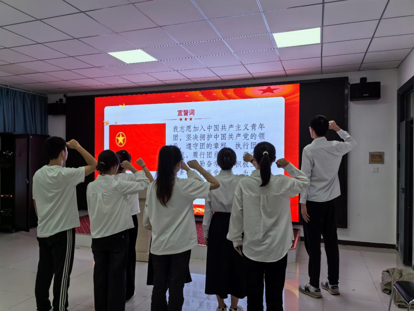 在宣读入团誓词的环节中,新团员们铿锵有力的誓言响彻会场,表达了他们对共青团组织的忠诚和对党的坚定信仰。他们承诺将努力学习,积极工作,为社会主义事业贡献青春力量。随后,倪洁书记为新团员颁发了团员证和团徽,象征着他们正式成为共青团的一员,肩负起新时代青年的责任与使命。