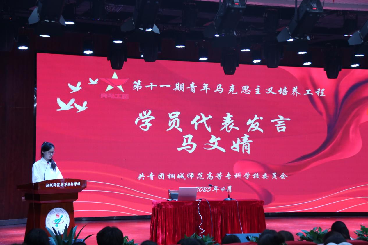学员代表马文婧分享了自己对青马班的理解,表示将积极投身于培训之中,并呼吁青马学员们努力学习马克思主义理论,积极参与社会实践,不断提升自己的综合素质和能力,为实现个人价值和社会价值而不懈奋斗。
