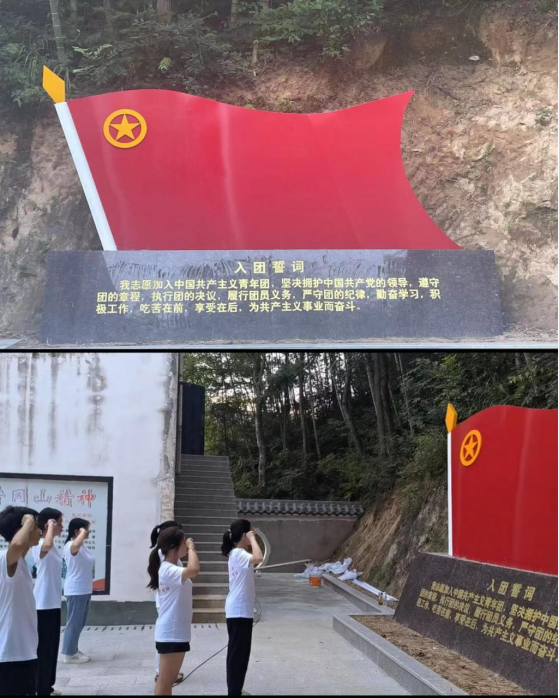 在纪念馆内,面向鲜艳的团旗,实践小组成员在指导老师的见证下重温入团誓词:“我志愿加入中国共产主义青年团,坚决拥护中国共产党的领导,遵守团的章程,执行团的决议,履行团员义务,严守团的纪律,勤奋学习,积极工作,吃苦在前,享受在后,为共产主义事业而奋斗!”再次接受心灵的洗礼,用铿锵有力的宣誓庄严承诺践行使命的信心和决心。