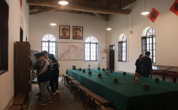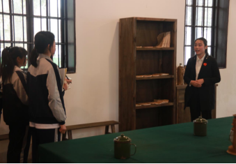 进入大门,映入眼帘的是一张会议桌,解说员为实践小组介绍了刘邓大军在这里召开会议的故事,小组成员们了解到了“打过长江去,解放全中国”这句话的真正意义。