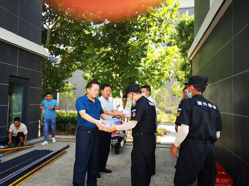 8月23日上午,正值高温酷暑,学校党委书记王子龙先后来到校大门口安保室、校园绿化现场、操场周边护栏施工场地、学生公寓维修现场等走访慰问暑期坚守在岗位上的一线后勤保障人员,并送上防暑降温慰问品。党委委员、副校长吴登明陪同慰问,总务处、保卫处等部门负责人参加。